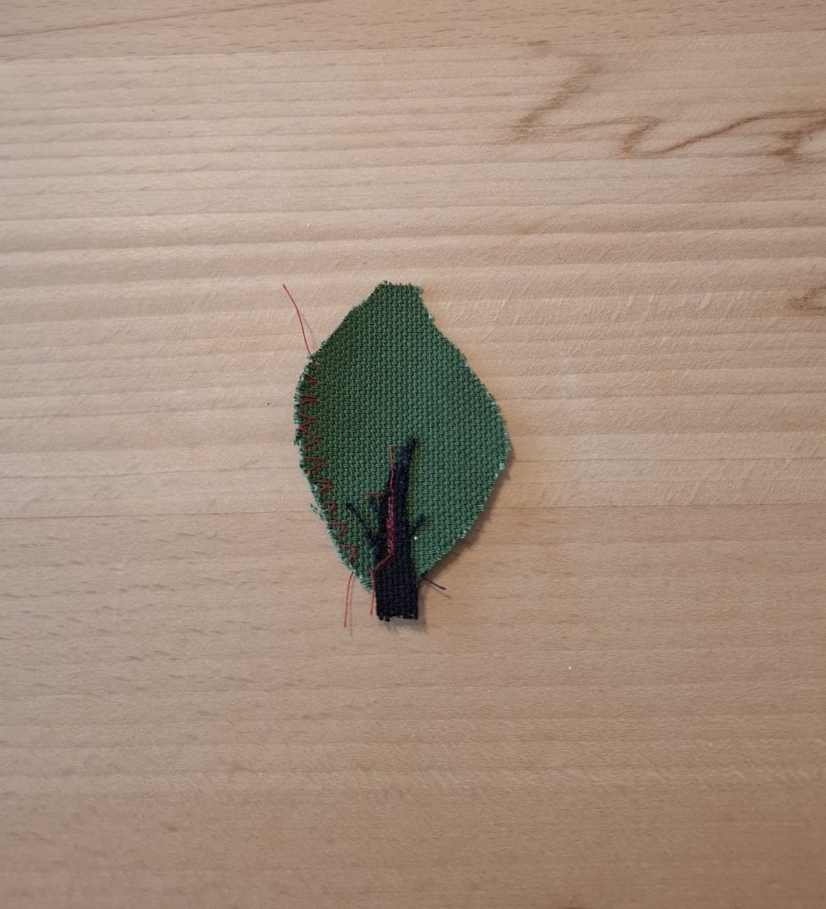 - Nach Eingang einer Spende schicke ich dann symbolisch ein selbstgenähtes Buchenblatt per Post.